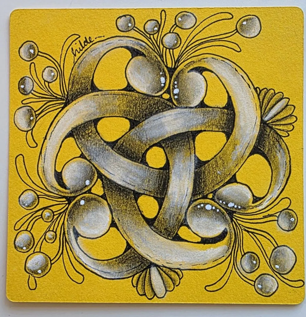 Een tile met Intwine van Stephanie Jennifer, getekend tijdens een les van het Zentangle Café.
