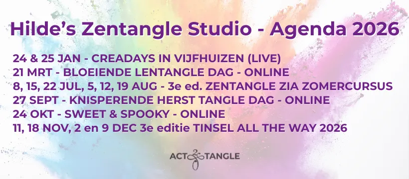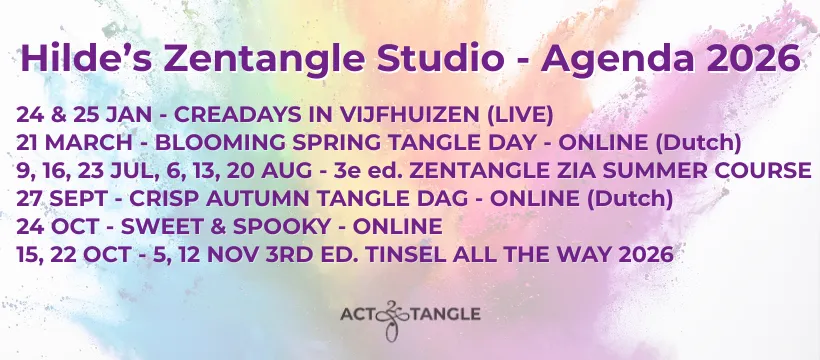Workshop mogelijkheden bij Hilde van Ginhoven Nederlandse workshops data 2026 English Speaking workshops dates 2026 Showmoon Workshop Interest Online via Zoom LIVE Workshops Zentangle Café Video lessen